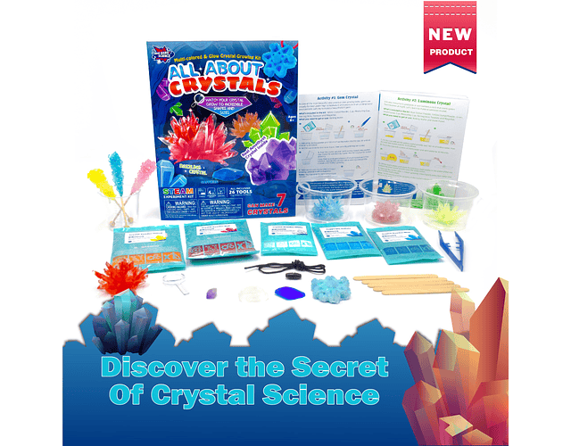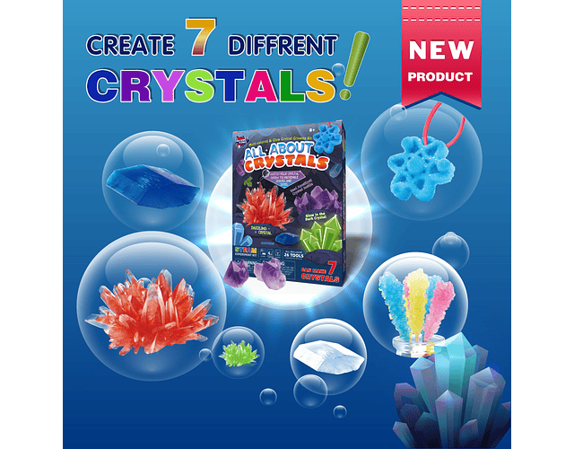 ¿Alguna vez soñaste con cultivar tus propios cristales brillantes? Con el set All About Crystals de Big Bang Science, los niños y niñas podrán convertirse en pequeños científicos y crear hasta 7 tipos diferentes de cristales en una experiencia divertida, educativa y asombrosamente colorida.